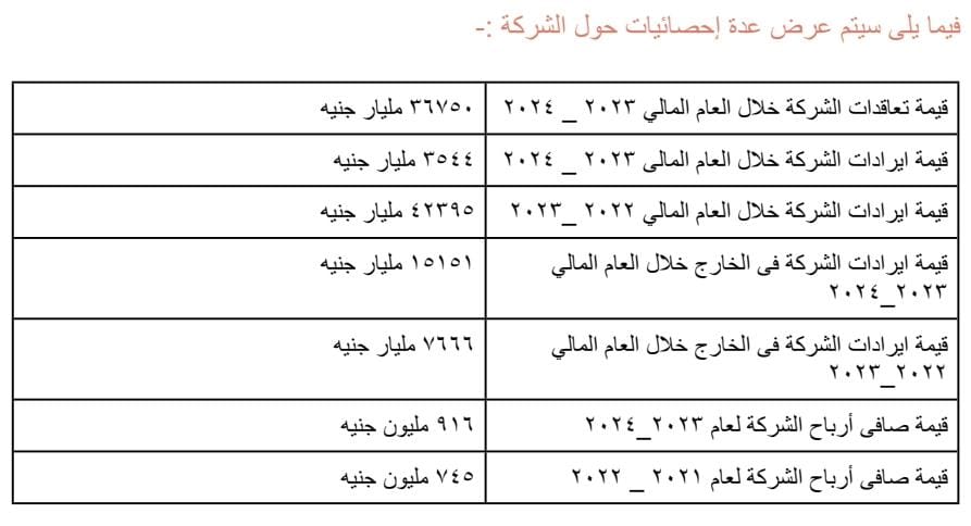 فيما يلى سيتم عرض عدة إحصائيات حول الشركة :-