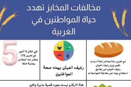 مخالفات المخابز تهدد صحة المواطنين في الغربية التموين تحرر 175 محضرا في 5 أشهر، 68 منها في محلة مرحوم وعدم مطابقة رغيف الخبز للمواصفات أبرز المخالفات.